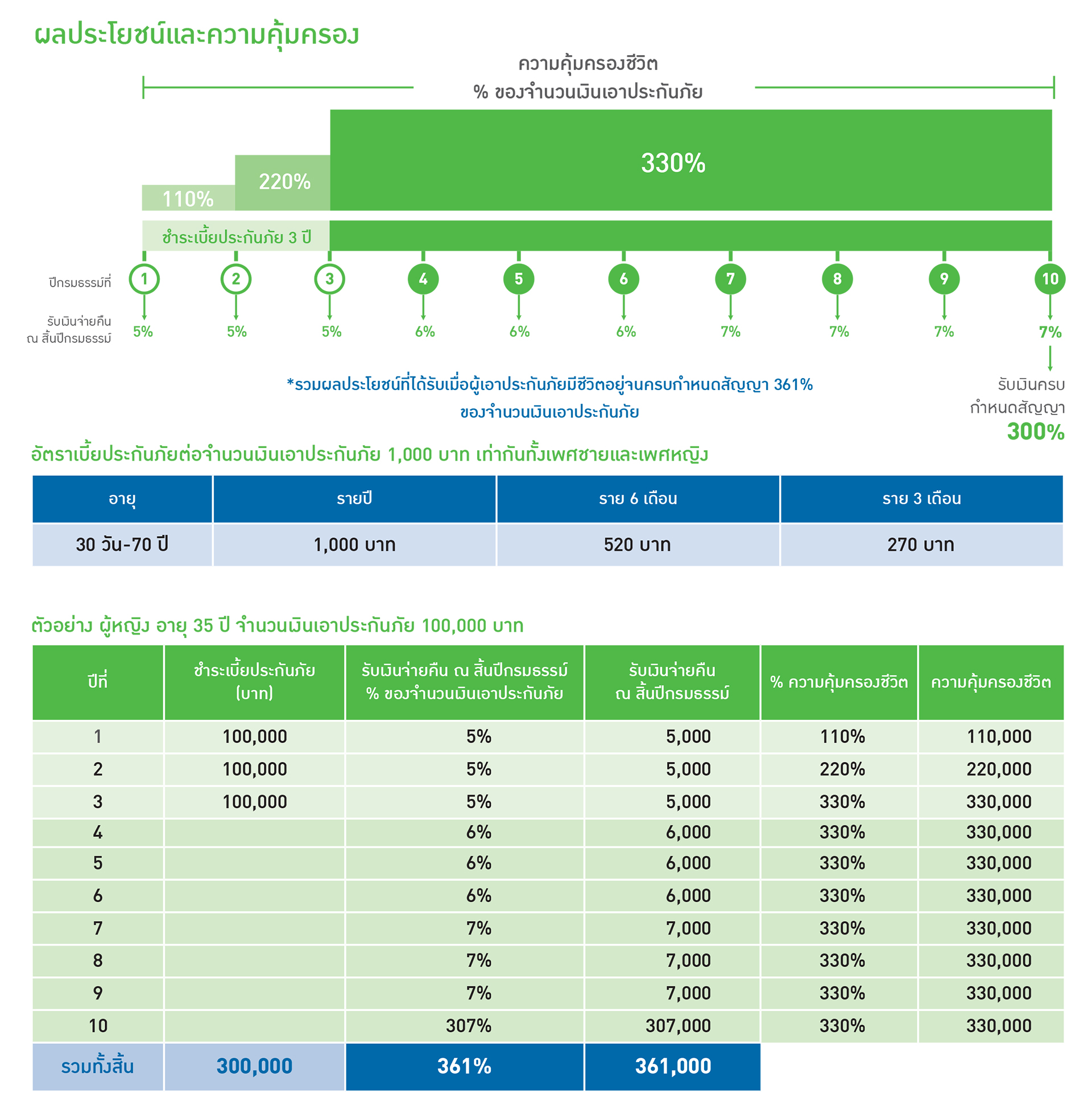 รับผลประโยชน์รวมตลอดอายุสัญญาสูงถึง 361% ของจำนวนเงินเอาประกันภัย