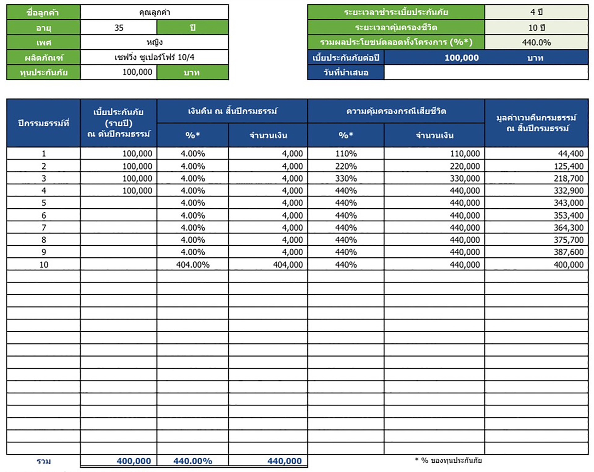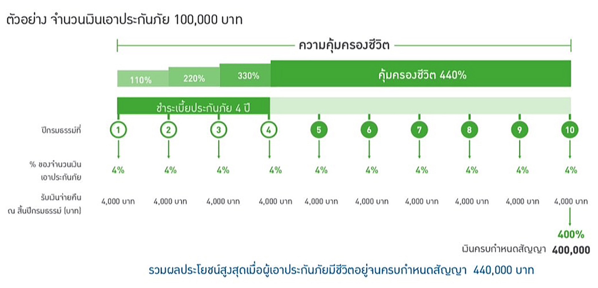 รับผลประโยชน์รวมตลอดสัญญาสูงถึง 400% ของจำนวนเงินเอาประกันภัย