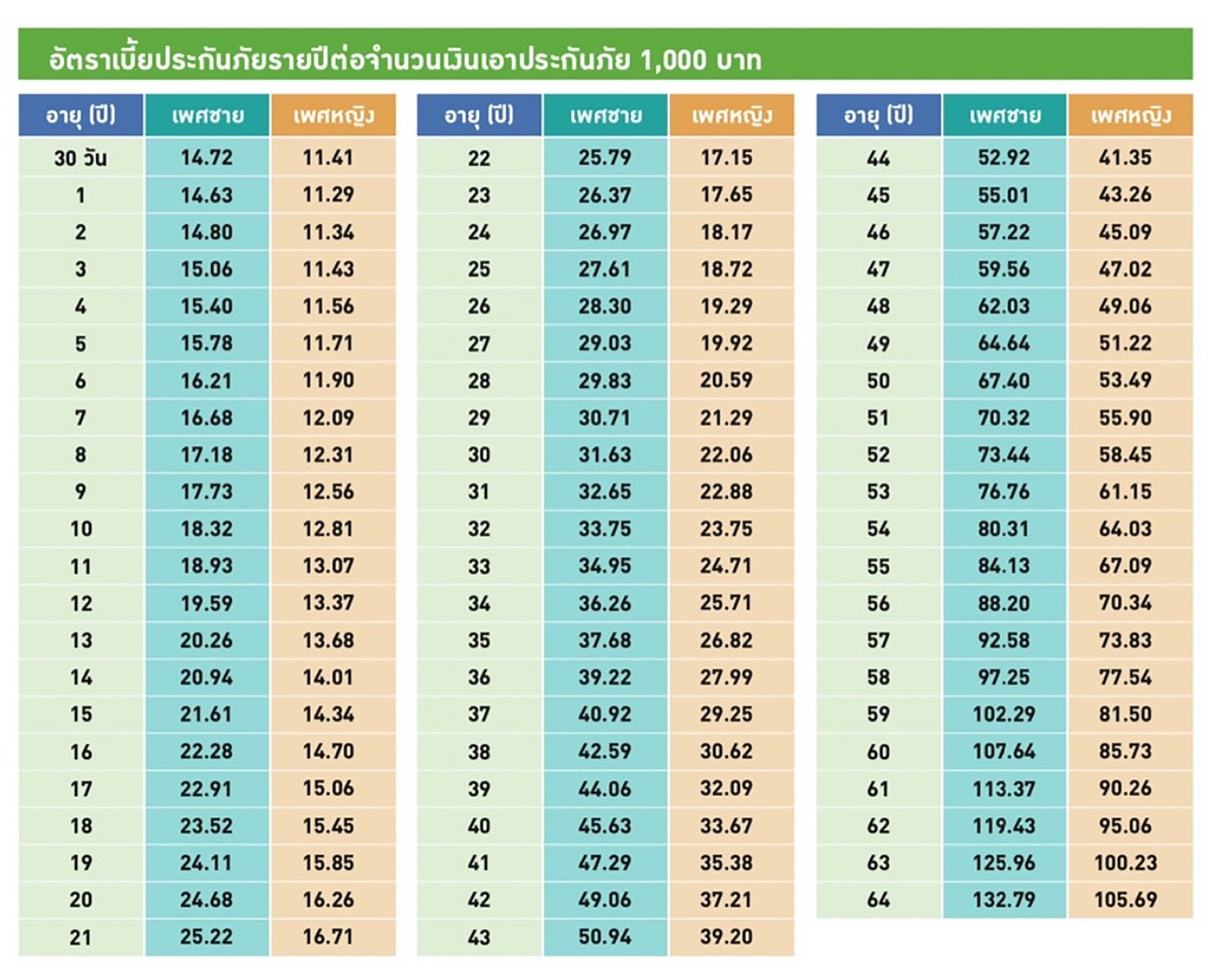อายุรับประกันภัยตั้งแต่อายุ 30 วัน- 64 ปี