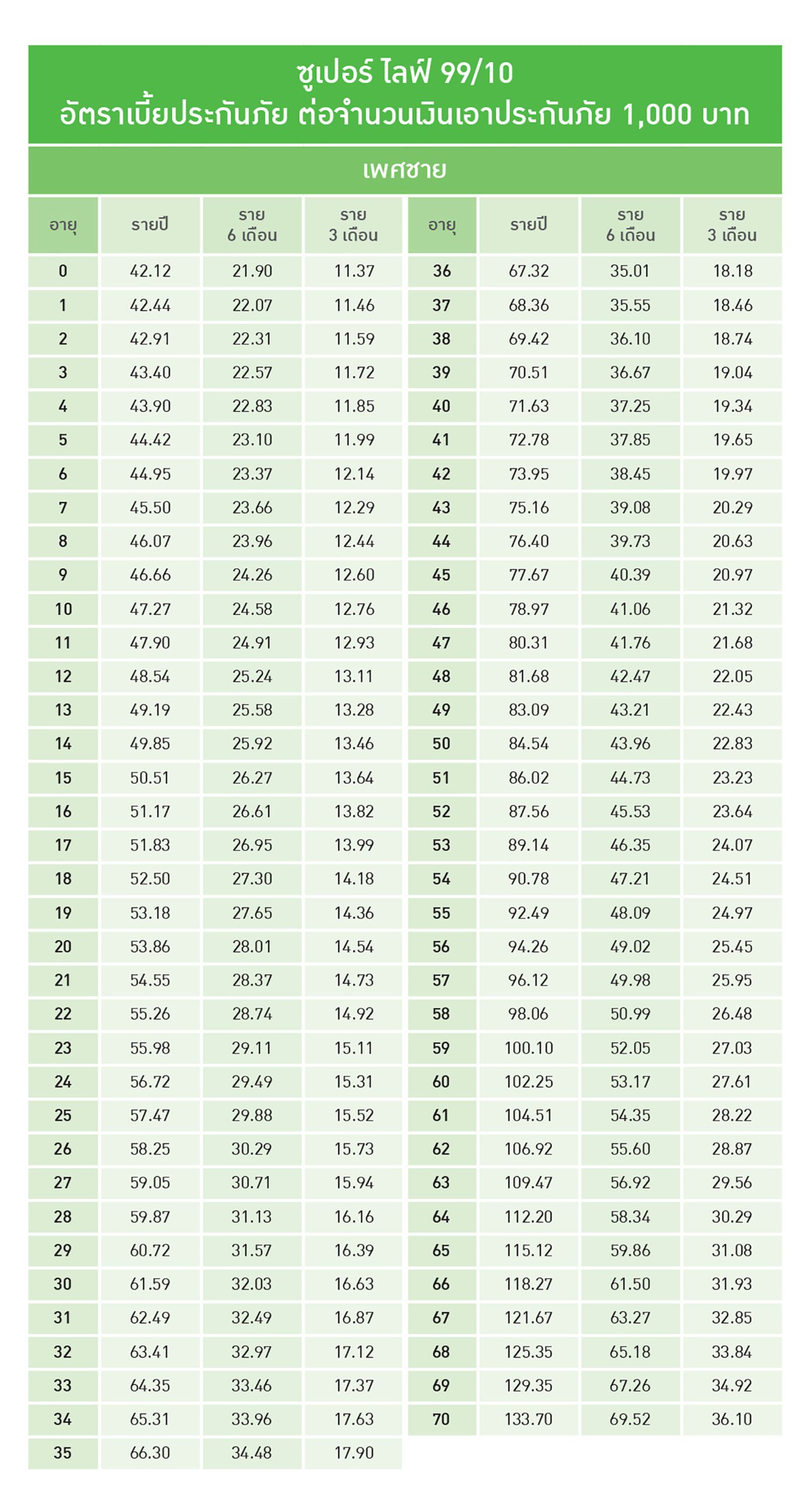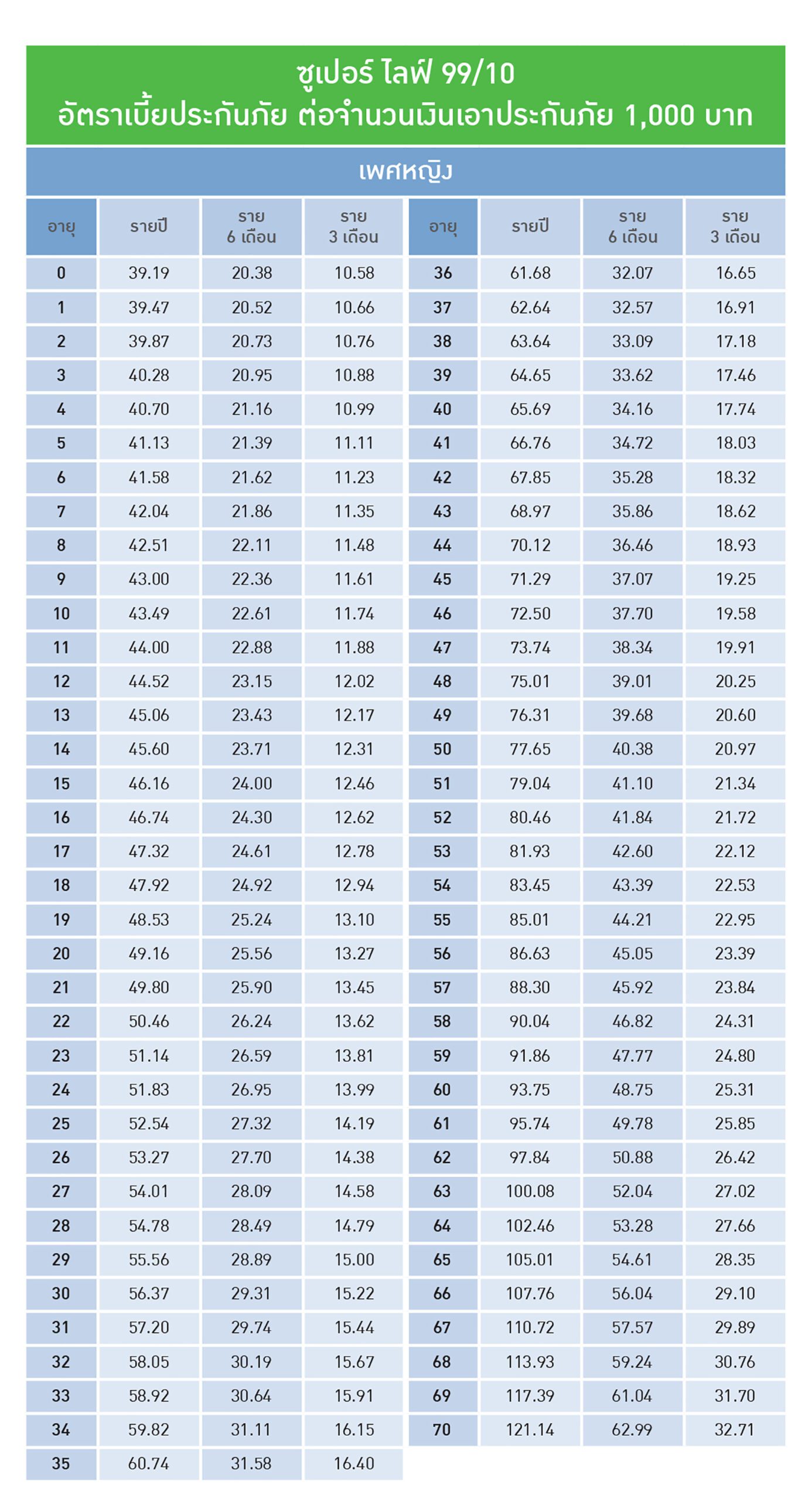 อายุรับประกันภัยตั้งแต่อายุ 30 วัน-70ปี