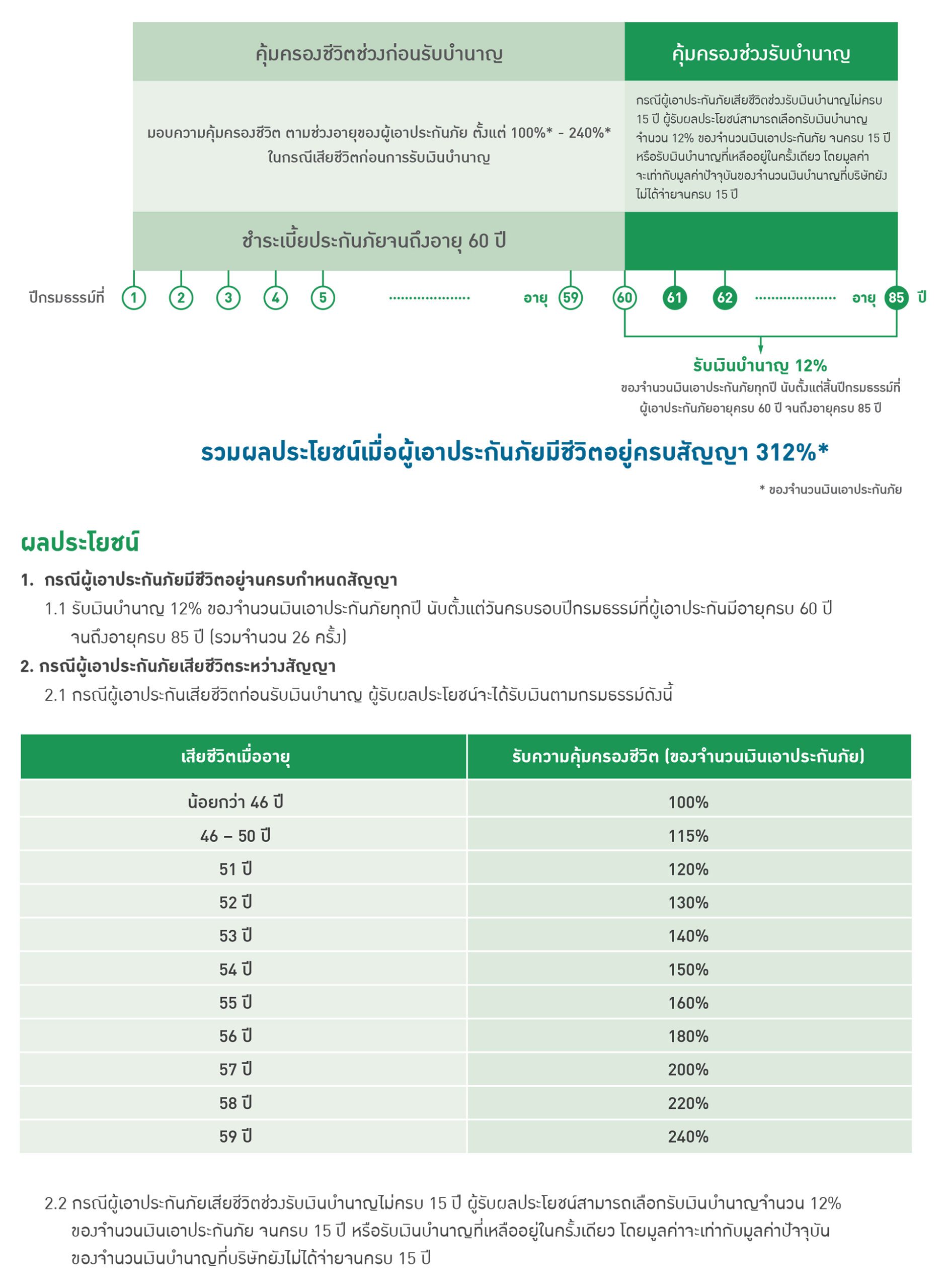 รับเงินบำนาญรวมตลอดสัญญาสูงสุด 312% ของจำนวนเงินเอาประกันภัย