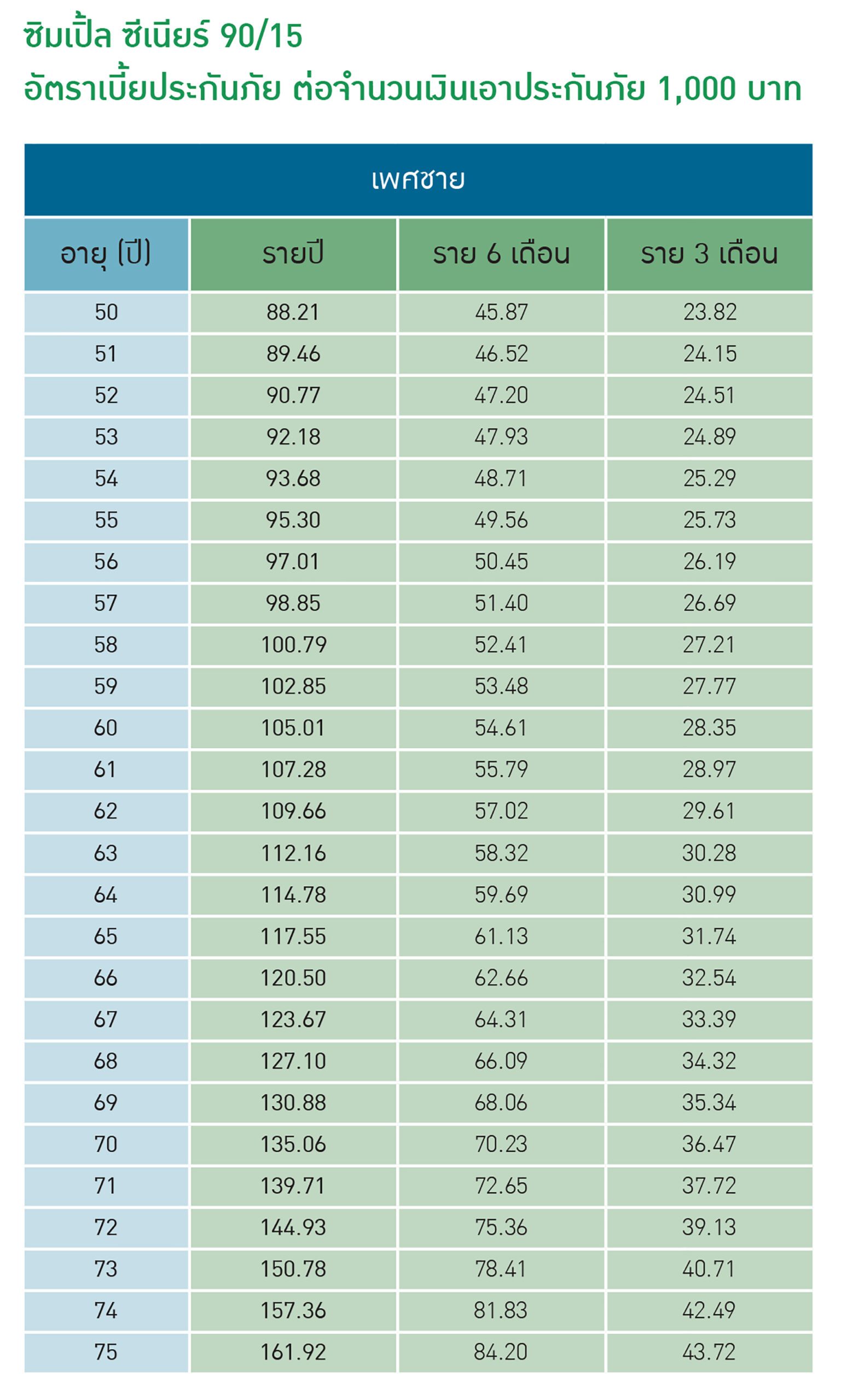 อายุรับประกันภัยตั้งแต่อายุ 50 วัน-75ปี